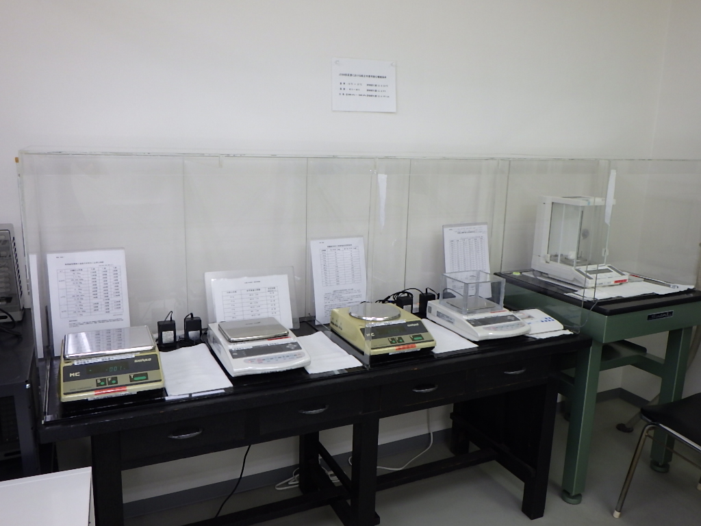 目量0.01mgの精密天びんやひょう量5kgの上皿天びん、60kgや200kgの台はかりなど多種多様なはかりを2日間に分けて校正作業を実施し、後日JCSS認定シンボル付校正証明書を発行いたしました。