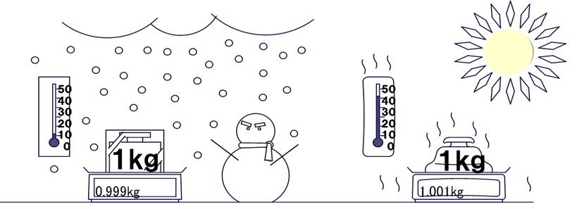 はかりは使用する環境の温度影響により、ゼロ点やスパン(感度)の変化が生じることがあります。