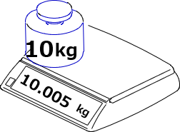 例えば、1階で「200.00000g」を示した計量物を、4階(10m)に移動して計量すると、「199.99937g」と表示することになります。