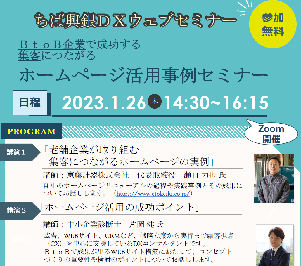 株式会社千葉興業銀行様主催の【ちば興銀DXウェブセミナー】に当社代表取締役の瀬口が講師として登壇いたします。